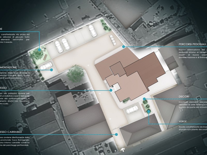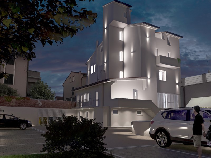 Prestigioso attico che occupa il terzo piano di un centralissimo edificio in ristrutturazione, con ascensore condominiale, cantina esclusiva e doppio posto auto esterno nel resede a comune che comprende anche alcune piccole aree a verde.