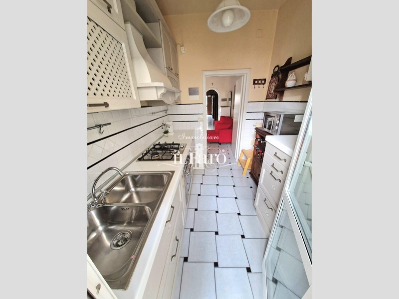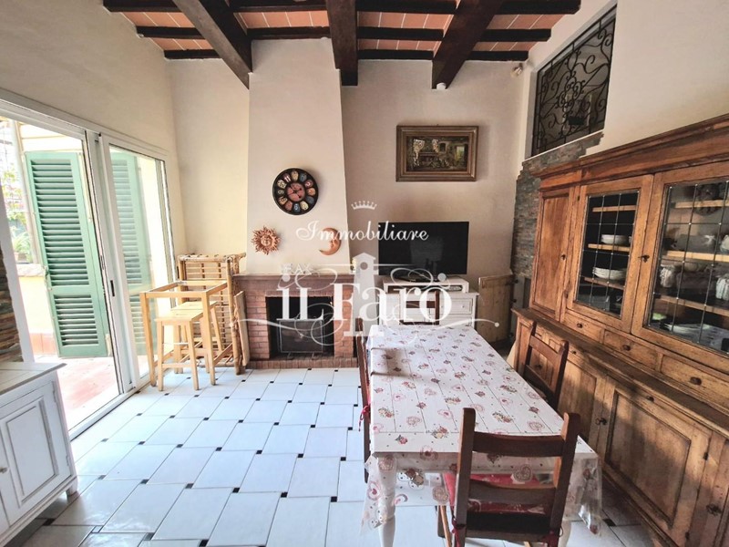 Entrando al piano terreno ci accoglie l'ingresso che conduce ai vari ambienti rispettivamente ad una ampia e luminosa sala, divisa dal tinello con cucinotto separato e con accesso diretto al GIARDINETTO TERGALE sul quale insiste un'annesso in muratura adibito a lavanderia. Sempre al piano terreno è presente un pratico ripostiglio sottoscala.