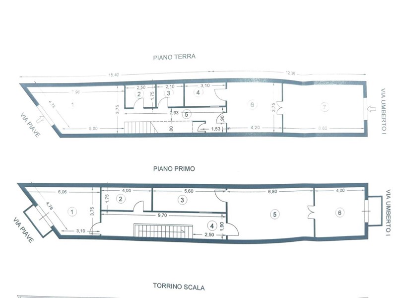 In zona centrale e vicina a tutti i servizi, proponiamo in vendita ampia soluzione indipendente con doppio accesso da Via Piave e da Via Umberto I composta da due unità immobiliari di cui una al piano terra e l'altra al primo piano con garage di pertinenza. La soluzione al piano terra, che vanta una superficie di circa 63 mq è composta da ingresso su corridoio, ampio soggiorno con camino, cucina abitabile, una comoda camera da letto e un bagno completo di doccia. La soluzione al primo piano invece, che vanta una superficie di circa 90 mq , presenta un'ottima distribuzione degli spazi interni e rifiniture di pregio che la rendono unica nel suo genere ed è composta da ingresso su ampio soggiorno pranzo, cucinotto, due ampie e confortevoli camere da letto matrimoniali e un bagno completo di doccia. Completano la proprietà il lastrico solare di pertinenza e il garage al piano terra. Le due unità abitative possono esser vendute anche singolarmente : il piano terra ad un prezzo di 65.000 ?, il primo piano ad un prezzo di 85.000?.