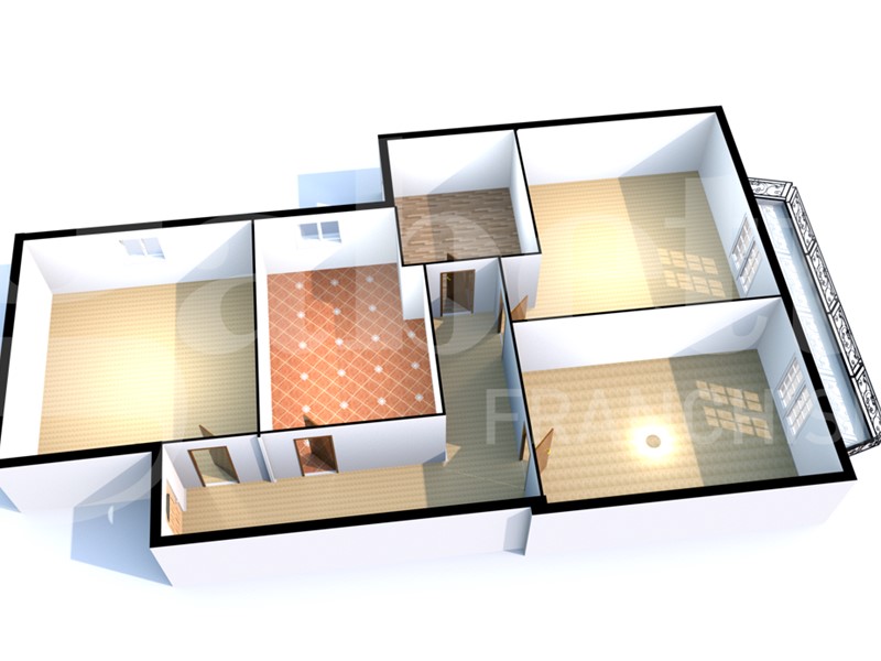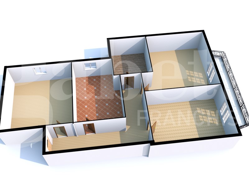 L'appartamento ha una superficie catastale di 88 metri quadri ed è composto da un ingresso, un soggiorno accogliente, una cucina separata, una cameretta versatile, una camera matrimoniale e un bagno funzionale e ben tenuto, con balcone.