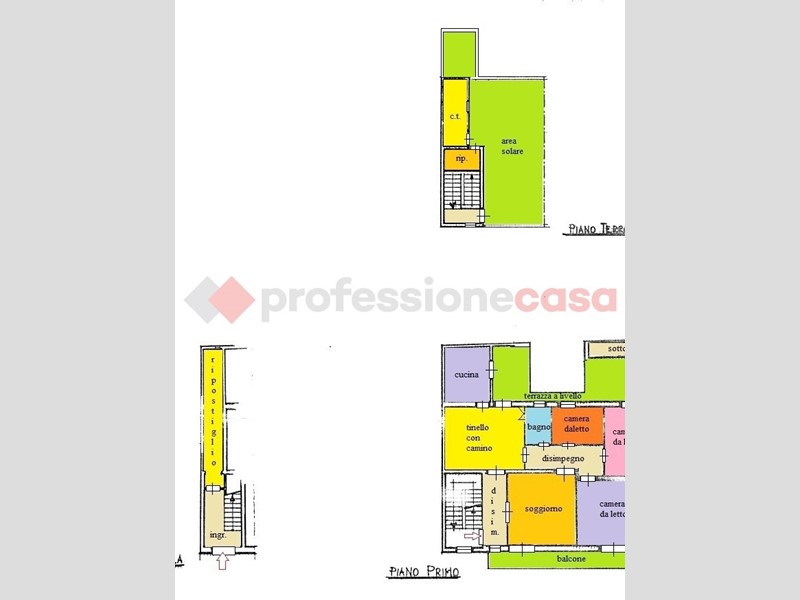 L'ingresso indipendente conduce al primo piano, dove troverai un luminoso soggiorno con balcone, un accogliente tinello con camino perfetto per serate invernali, una cucina spaziosa, tre camere da letto ben dimensionate e un bagno funzionale.