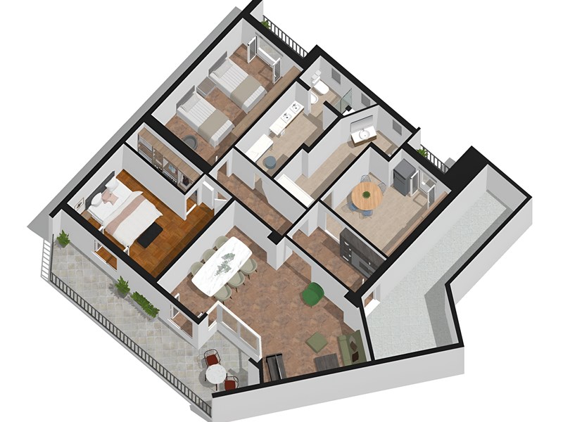 La prima camera con spaziosa cabina armadio si affaccia sul balcone collegato al soggiorno, offrendo molta luce naturale. La seconda camera ha accesso al secondo balcone, garantendo uno spazio privato e tranquillo.