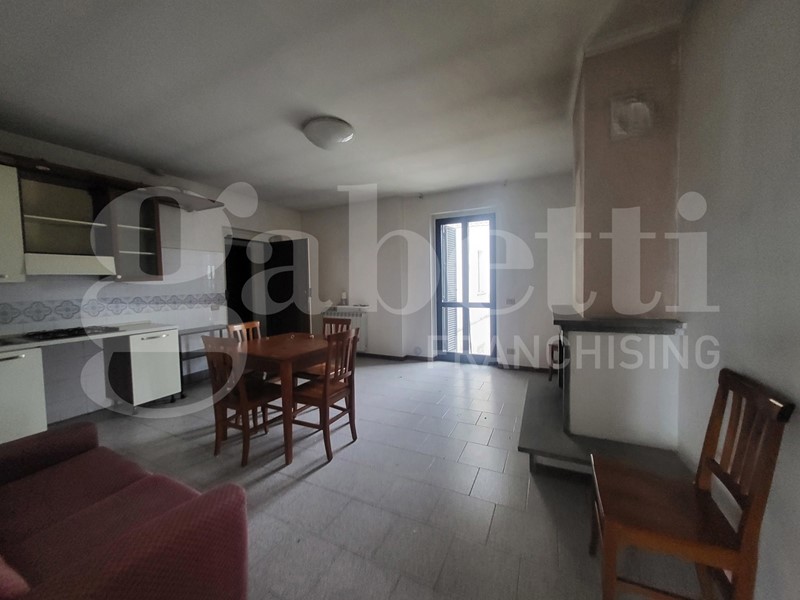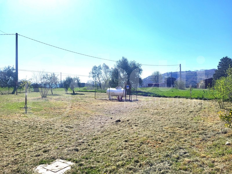 In trifamiliare, appartamento al piano primo composto da soggiorno, cucina abitabile con camino e accesso ad ampia terrazza, 2 camere, bagno. A piano terra due garage, un fondo allo stato grezzo. Completa la proprietà un terreno di circa mq 5.000 con alberi da frutto.