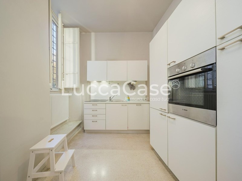 E055S - Lucca - centro storico - Appartamento locato, si vende con contratto appena stipulato e inquilino che abita l'immobile - Appartamento situato in zona prestigiosa vicinissimo alle mura in uno dei palazzi storici più eleganti e nobili del centro storico. L'appartamento è stato oggetto di un attento risanamento e consolidamento generale, riscoprendo fregi e soffitti a cassettoni originali. E' posto al Piano Terra e si compone di un ampio salone, la cucina separata, una camera matrimoniale con cabina armadi, bagno con doccia. Ma tramite le scale interne si raggiunge la taverna con un' ampia camera e un bagno con vasca inoltre c'è la zona lavanderia. La casa e' arredata di cucina completa di elettrodomestici (piano cottura ad induzione, forno, frigorifero con congelatore, lavastoviglie e microonde), in sala c'è il tavolo con 4 sedie e divano letto e tv. Inoltre sono arredate le due camere. L'appartamento gode del privilegio di avere un suo parcheggio di proprietà esclusiva nel garage interrato dell'edificio. L'immobile si vende affittato con contratto stipulato nel 2025. Ape: classe F, 146,8kwh/mq anno.