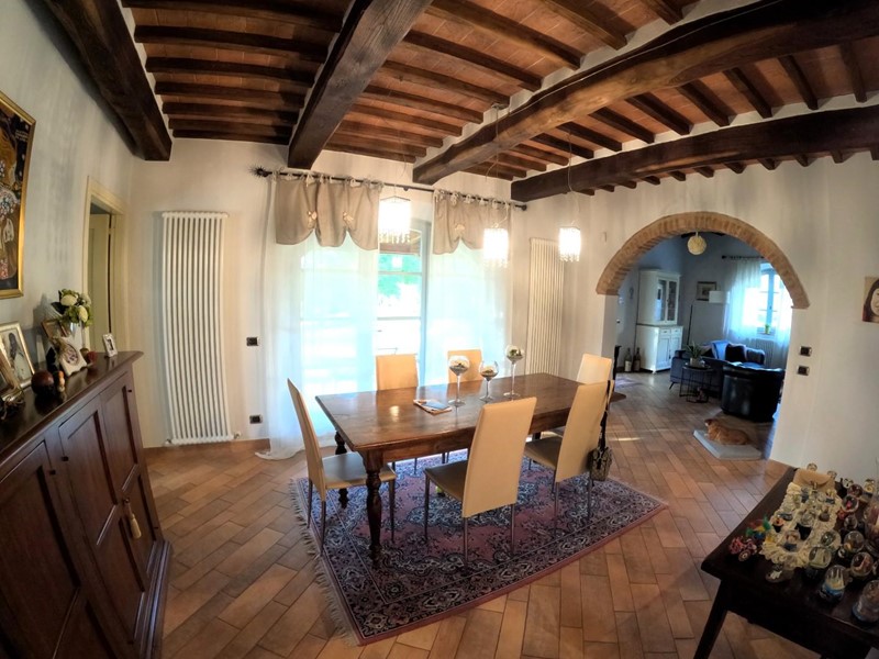 Piano terra: ampia sala pranzo e zona soggiorno con stufa a legno, bagno grande finestrato, due ripostigli