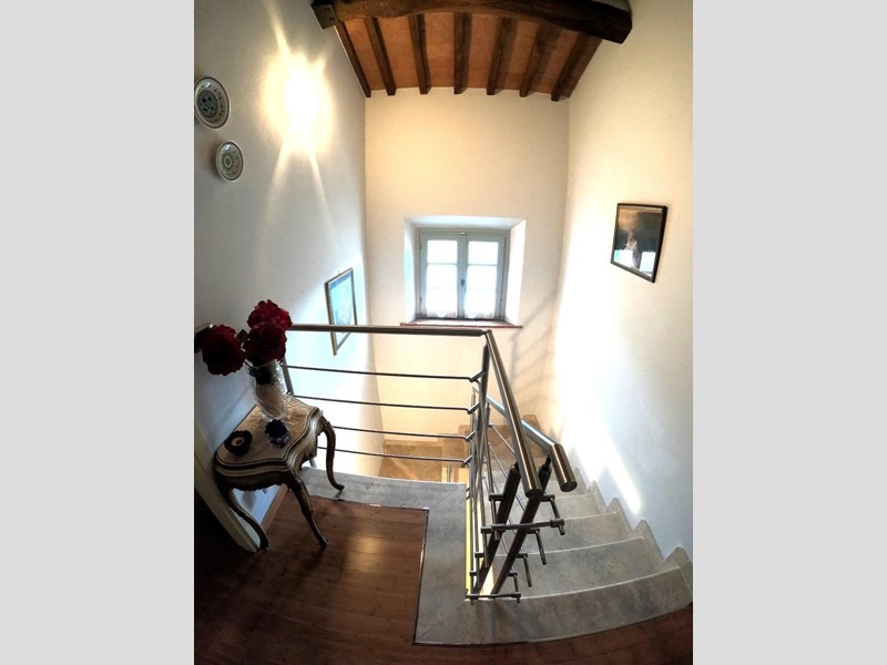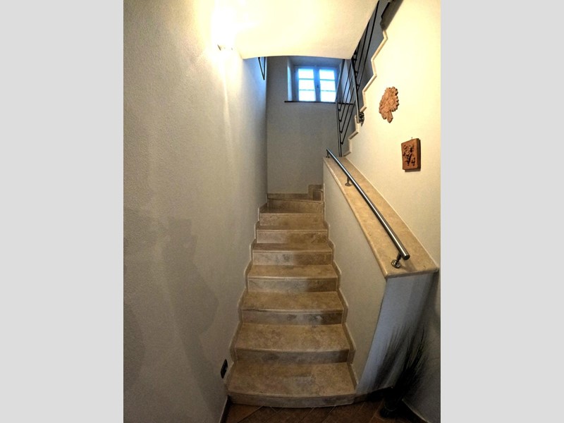 Piano Primo: salendo una scala interna si arriva alle tre camere (di cui una con locale guardaroba), bagno grande finestrato