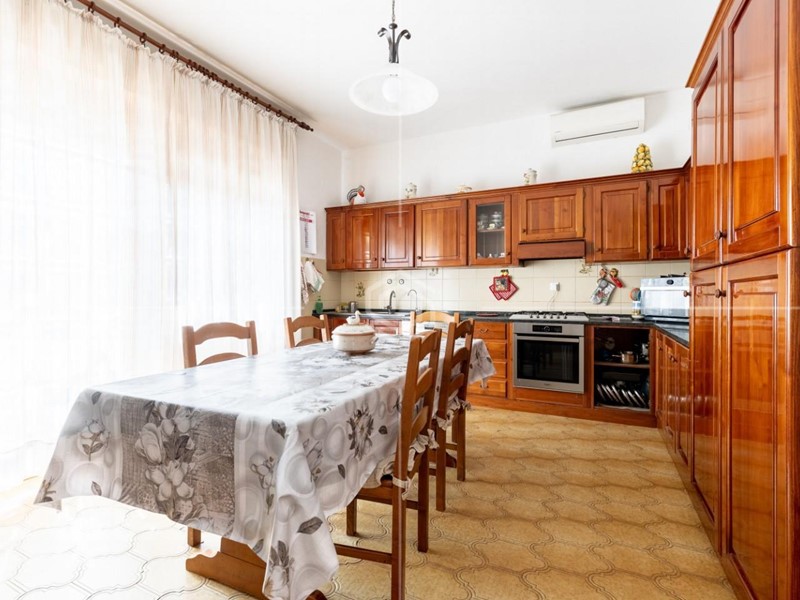 Una scala esterna conduce al secondo appartamento, posto al primo piano, che si sviluppa con un ingresso, un soggiorno, una cucina abitabile con zona pranzo, un disimpegno notte, due camere matrimoniali e un bagno con finestra.
