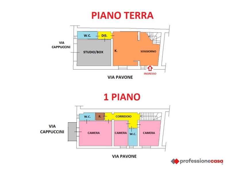 Al piano terra, troviamo una spaziosa e luminosa sala a vista, con angolo cottura, che offre un ambiente perfetto per momenti di convivialità. Un disimpegno separa l'area giorno da un comodo studio/box auto, con accesso diretto da via Cappuccini, ideale per chi cerca un angolo di tranquillità per lavorare, dedicarsi a passioni personali o parcheggiare la propria auto in sicurezza. Completa questo livello un comodo bagno di servizio.