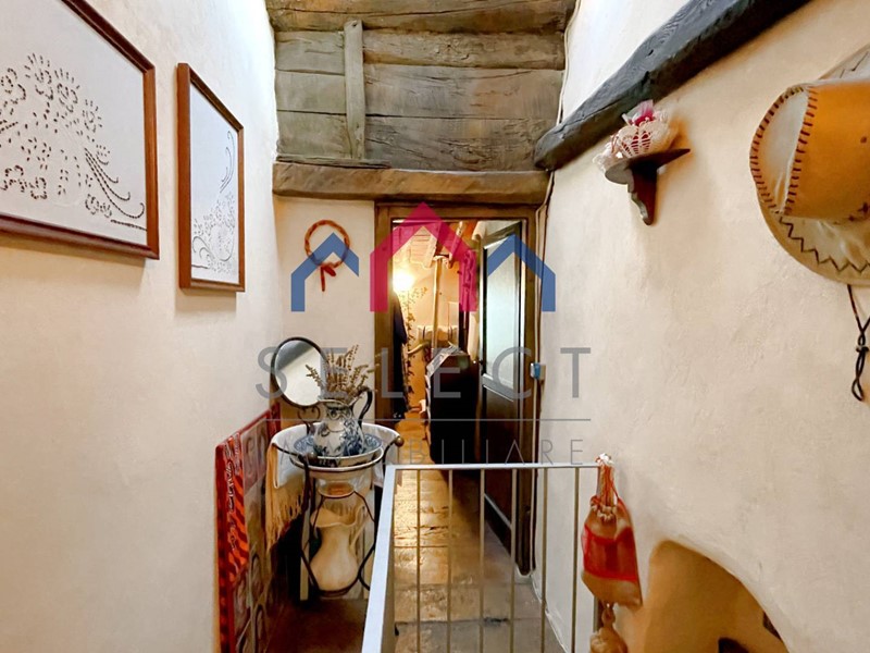 Una scala in legno, che scricchiola dolcemente sotto i piedi, conduce al piano superiore. Qui, il corridoio porta alla camera matrimoniale, un vero nido di tranquillità, dove le travi in legno al soffitto creano un'atmosfera unica, sospesa tra passato e presente. È un luogo in cui svegliarsi con i primi raggi del sole che filtrano dalle finestre e riscoprire il piacere di un lento risveglio.