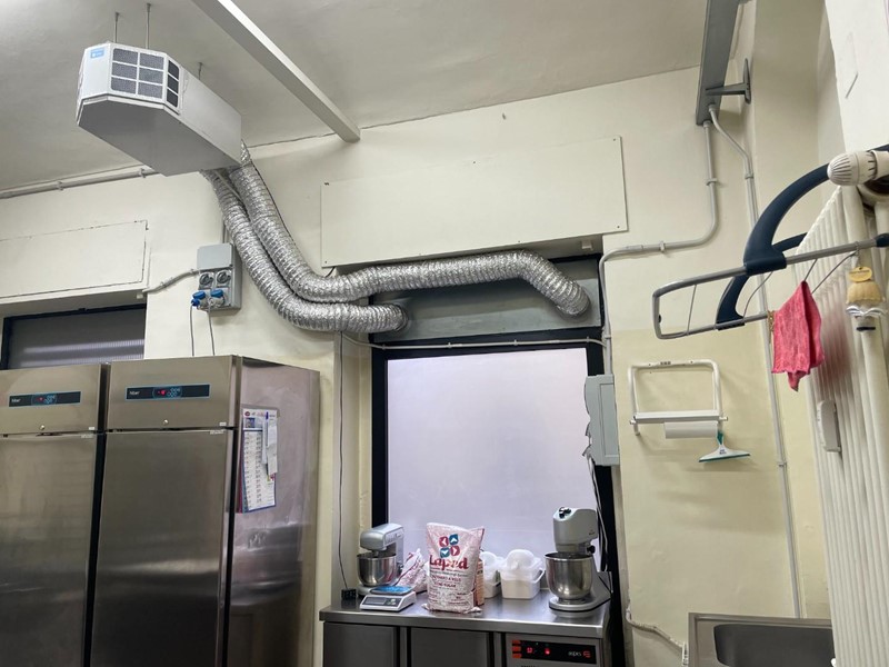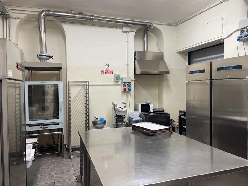 Il locale si sviluppa su una superficie di 130 mq. suddiviso in sala per somministrazione con 44 posti a sedere, servizio igienico a norma, ufficio, bagno per i dipendenti, magazzino e cucina di circa 30 mq. dotata anche di ventilazione forzata dell’aria.