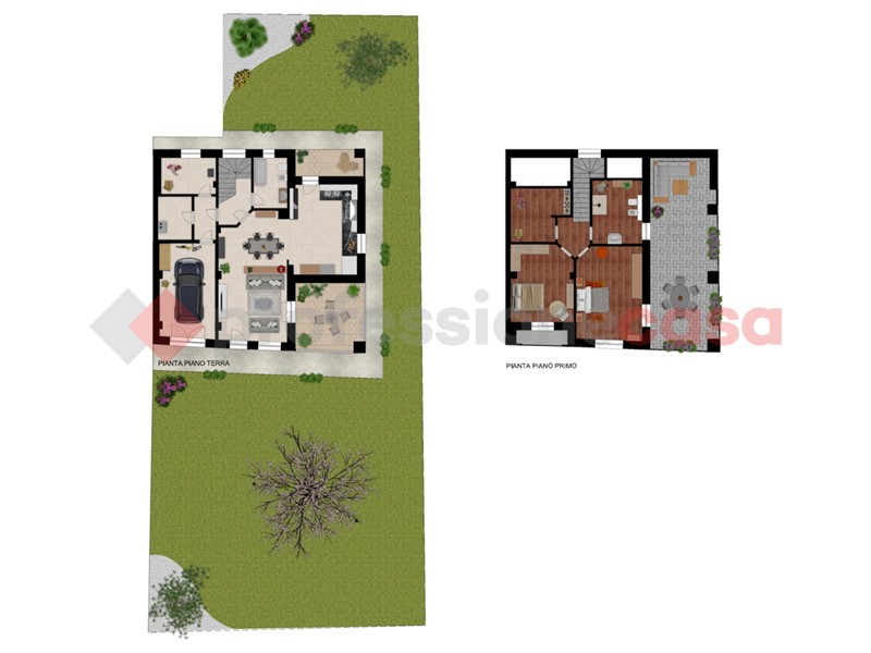 La soluzione propone accesso direttamente nel luminoso soggiorno living con accesso ad un portico verandato di circa 15mq ; adiacente al soggiorno è posta l'ampia cucina con accesso diretto alla porzione retrostante del giardino.