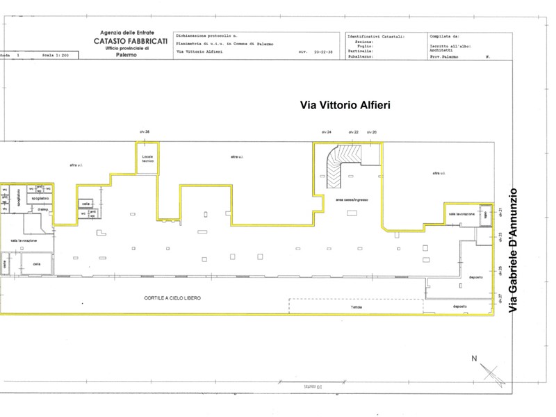 Trattasi di un corpo unico, di piano terraneo, di 1200 mq coperti oltre 350 mq di pertinenza esterna esclusiva, che trae accessi pedonali e carrabili dalla Via Vittorio Alfieri e dalla Via Gabriele D'Annunzio.