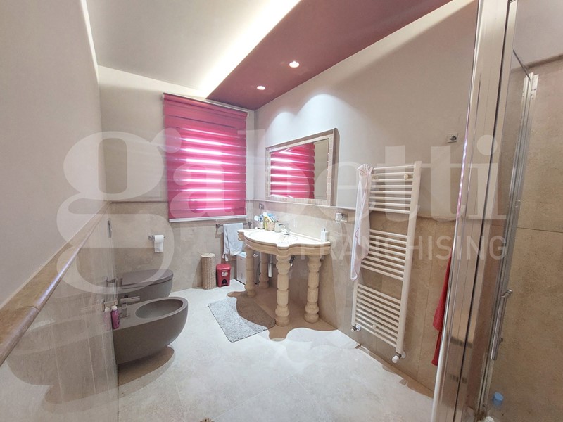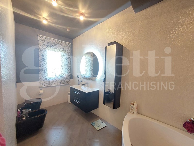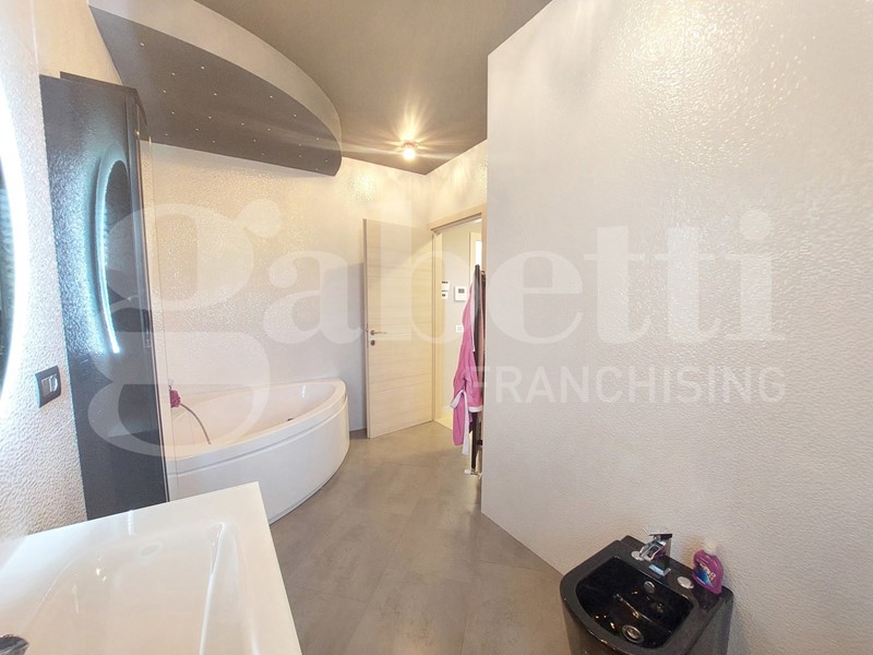 Al primo piano, una camera matrimoniale con cabina armadio e balcone privato, una cameretta e un lussuoso bagno con vasca idromassaggio garantiscono comfort e privacy. Il sottotetto dispone di tre ulteriori camere e un bagno con doccia, offrendo spazio aggiuntivo per la famiglia o gli ospiti.