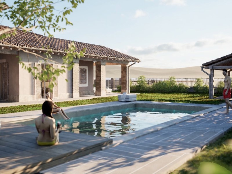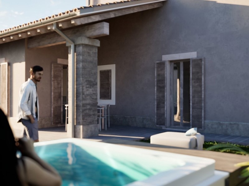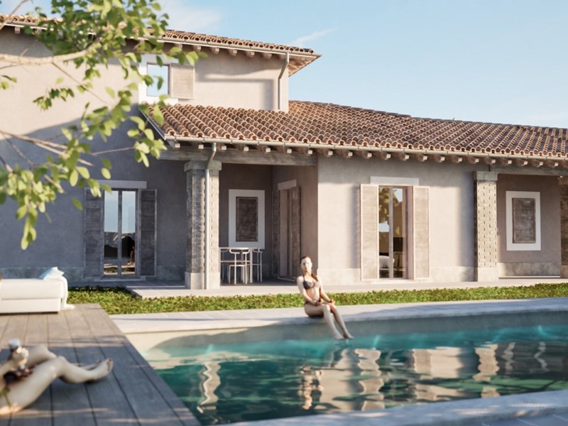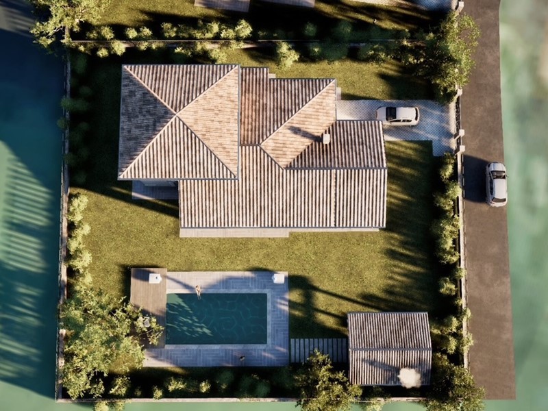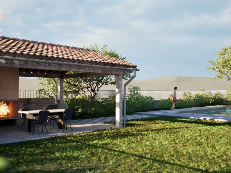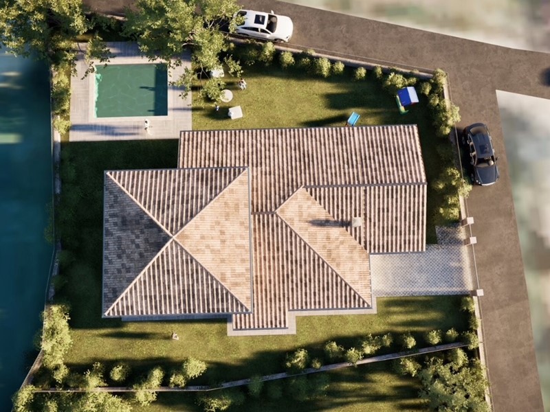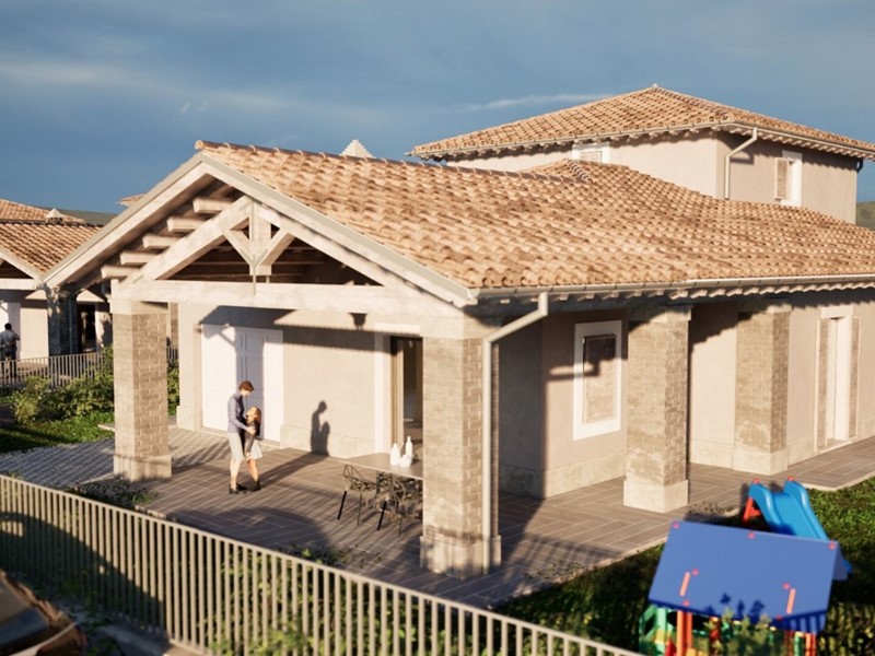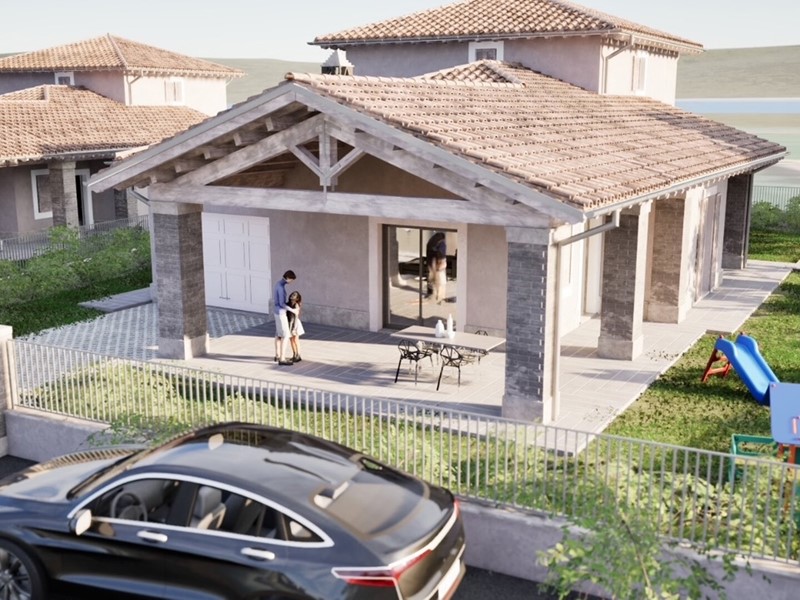 Costruita nel 2025, la villa è dotata di tutti i comfort moderni, tra cui videocitofono, impianto di riscaldamento a pavimento autonomo con pompa di calore, tetto in legno lamellare e sbiancato, pannelli fotovoltaici con 10 kw e climatizzazione. L'interno, in condizioni impeccabili e appena costruita, offre 4 camere da letto, un ampio soggiorno doppio, una cucina con angolo cottura e una sala hobby.