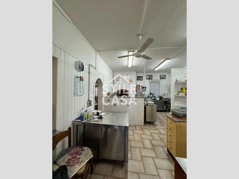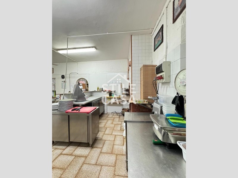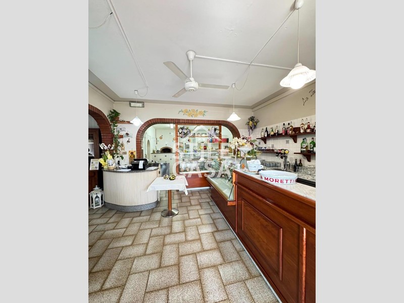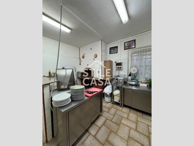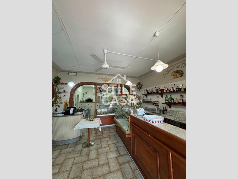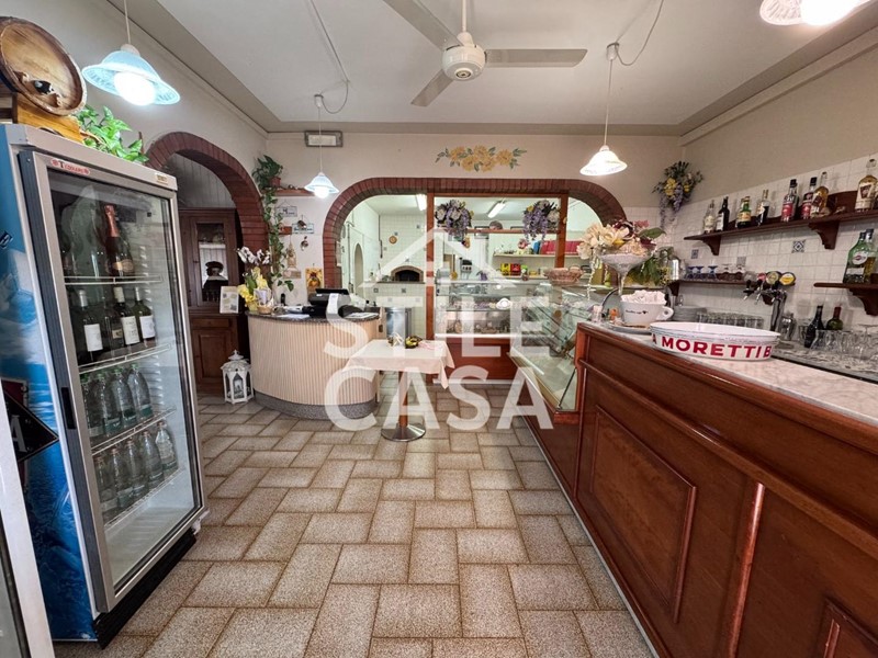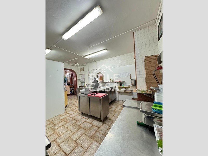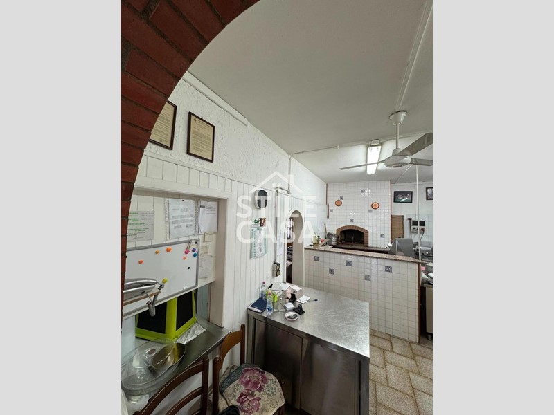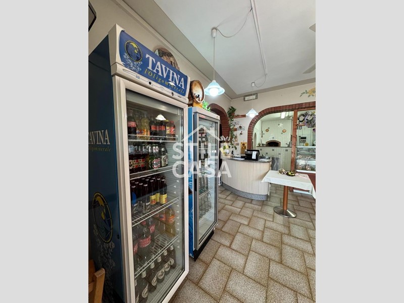 Ha un ingresso due vetrine. Si accede dall'attività esclusiva esterna. Il fondo è composto da un ampio ingresso dove attualmente si trova la postazione del bar, quattro sale che accolgono complessivamente 45 persone, una grande cucina attrezzata, forno a legna per delle ottime pizze e doppi servizi. A corredo del forno due magazzini uno esterno e uno nel seminterrato e oltre piazzale esclusivo.