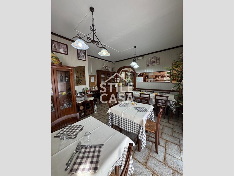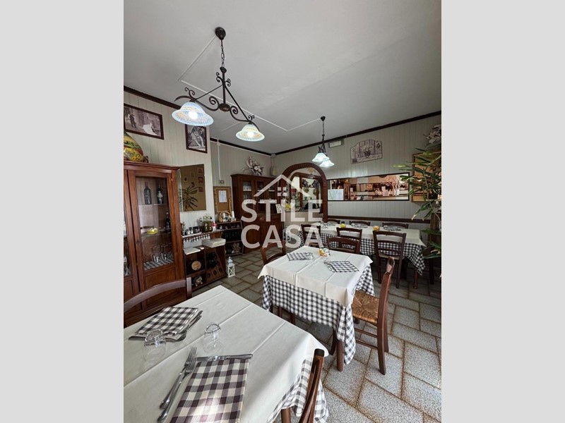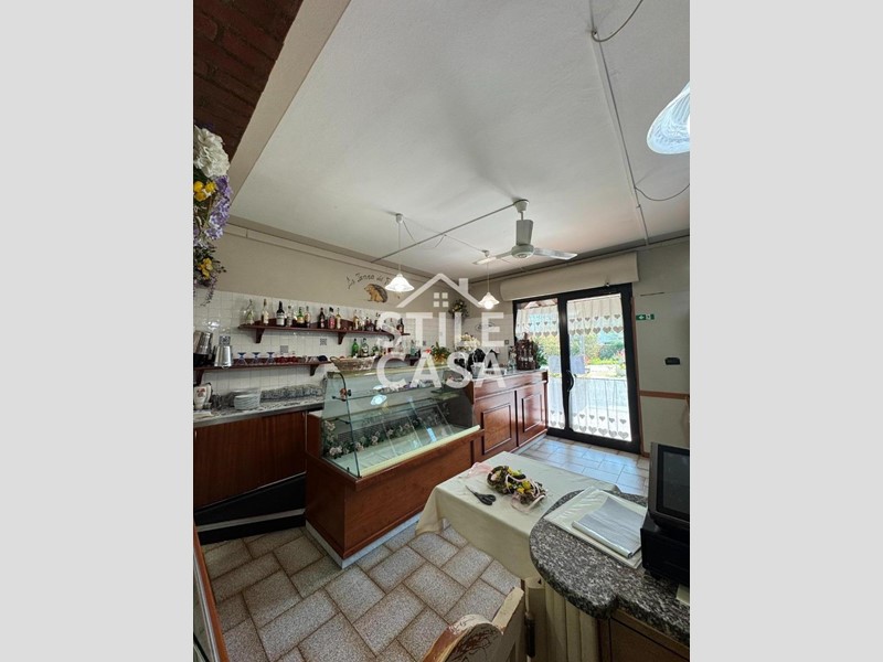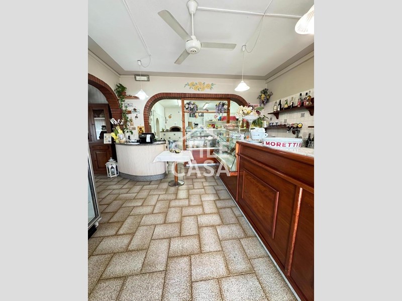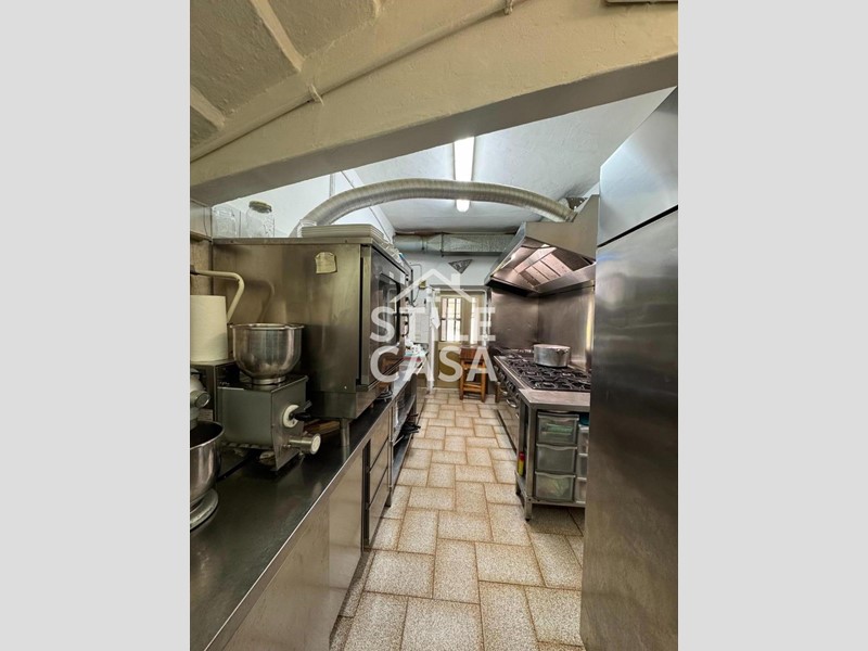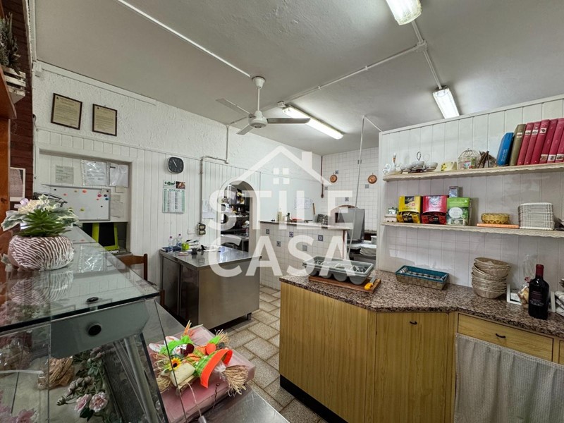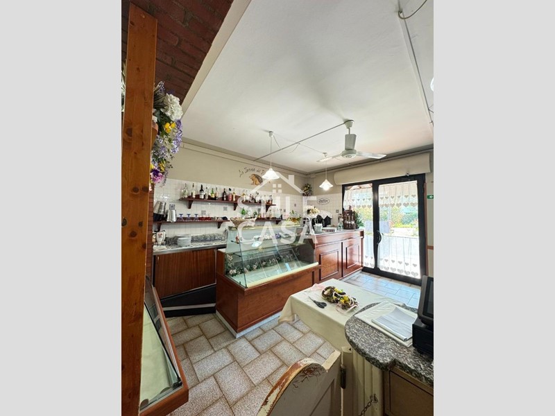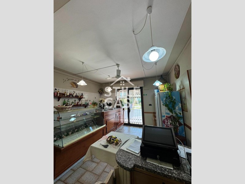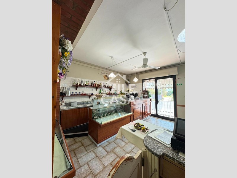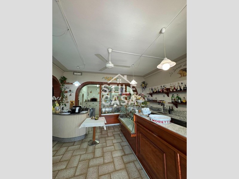 Ha un ingresso due vetrine. Si accede dall'attività esclusiva esterna. Il fondo è composto da un ampio ingresso dove attualmente si trova la postazione del bar, quattro sale che accolgono complessivamente 45 persone, una grande cucina attrezzata, forno a legna per delle ottime pizze e doppi servizi. A corredo del forno due magazzini uno esterno e uno nel seminterrato e oltre piazzale esclusivo.
