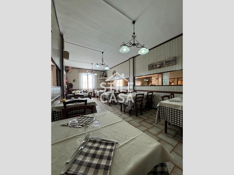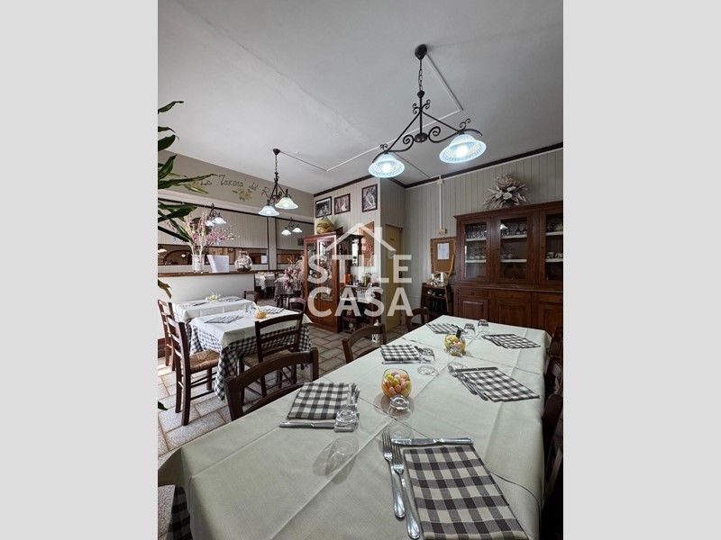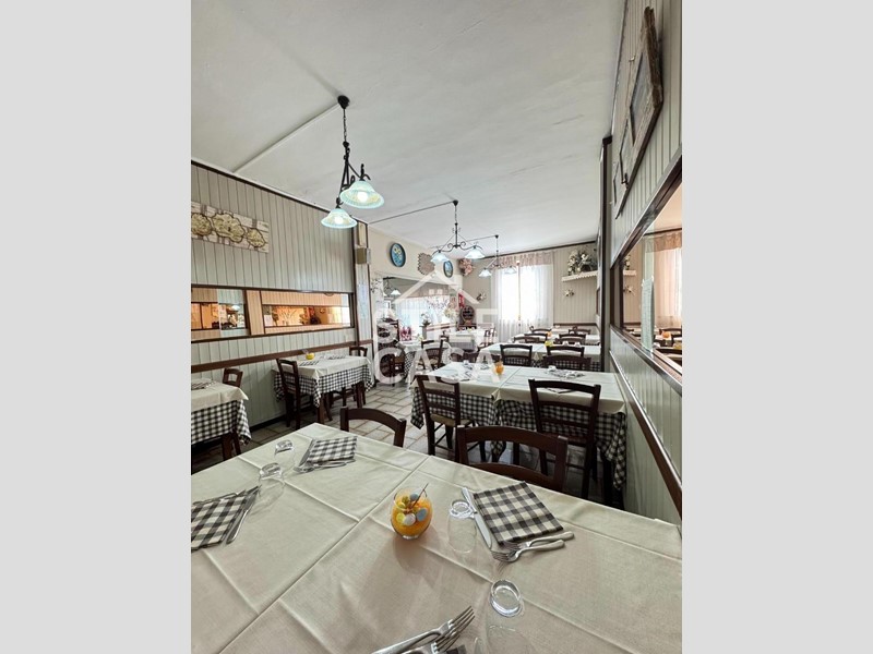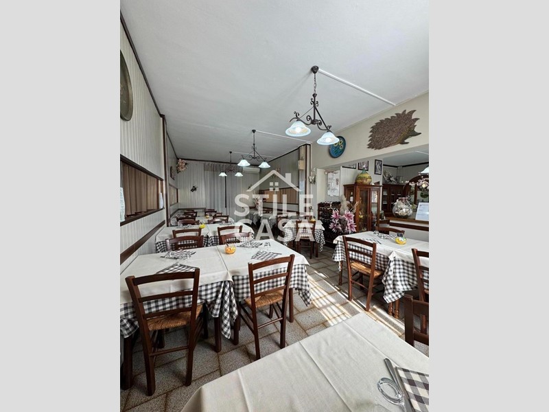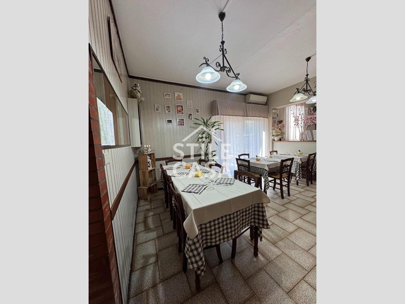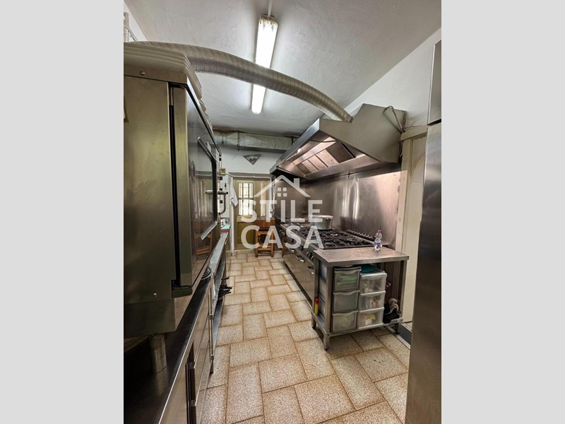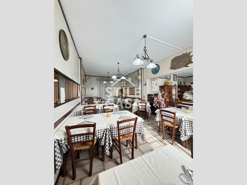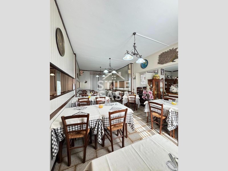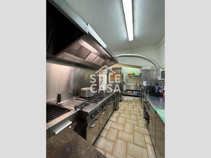 Ha un ingresso due vetrine. Si accede dall'attività esclusiva esterna. Il fondo è composto da un ampio ingresso dove attualmente si trova la postazione del bar, quattro sale che accolgono complessivamente 45 persone, una grande cucina attrezzata, forno a legna per delle ottime pizze e doppi servizi. A corredo del forno due magazzini uno esterno e uno nel seminterrato e oltre piazzale esclusivo.