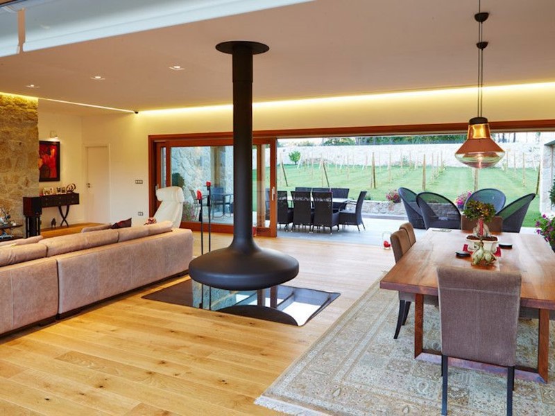Le ampie vetrate scorrevoli su tutti i lati della villa offrono una vista panoramica e permettono alla luce naturale di inondare ogni ambiente, creando un perfetto connubio tra l'interno e l'esterno. Ogni angolo di questa residenza è pensato per vivere il parco circostante in totale armonia con la natura.