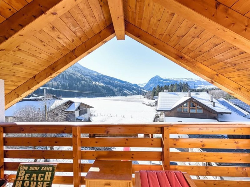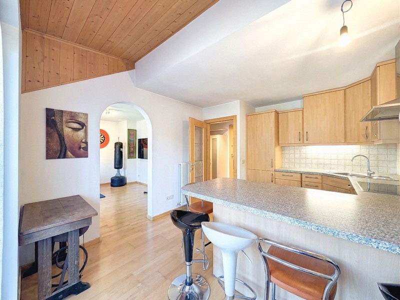 L'appartamento è suddiviso in soggiorno con angolo cottura, camera da letto, bagno e balcone; salendo le scale verso il sottotetto, si trova un ampio locale che può essere utilizzato come stanza, un ulteriore bagno-WC finestrato e un bel balcone con vista fantastica. La cantina è inclusa nel prezzo, il garage-box chiuso può essere acquistato con un sovvraprezzo di 25.000.- Euro.