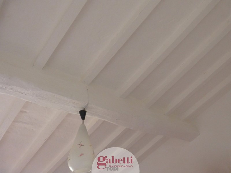 L'appartamento presenta alcuni elementi tipici dell'architettura umbra come i travi di legno al soffitto.