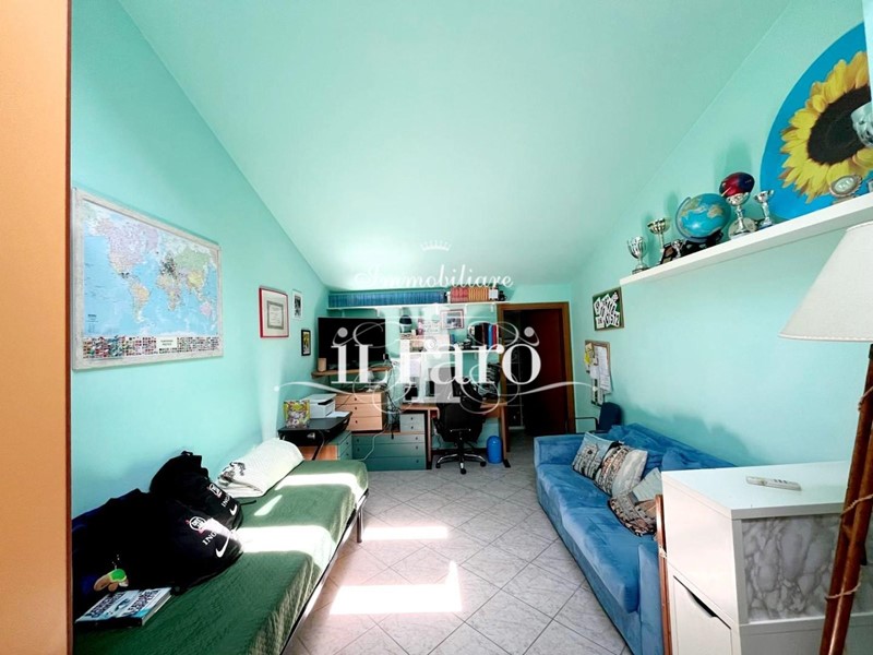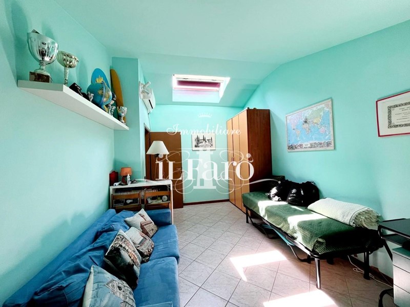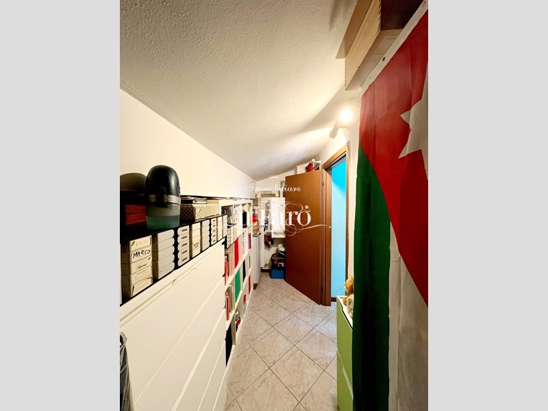 Al piano superiore accessibile da comode scale troviamo un ulteriore camera da letto con cabina armadio, un bagno finestrato e un ripostiglio pluriuso.