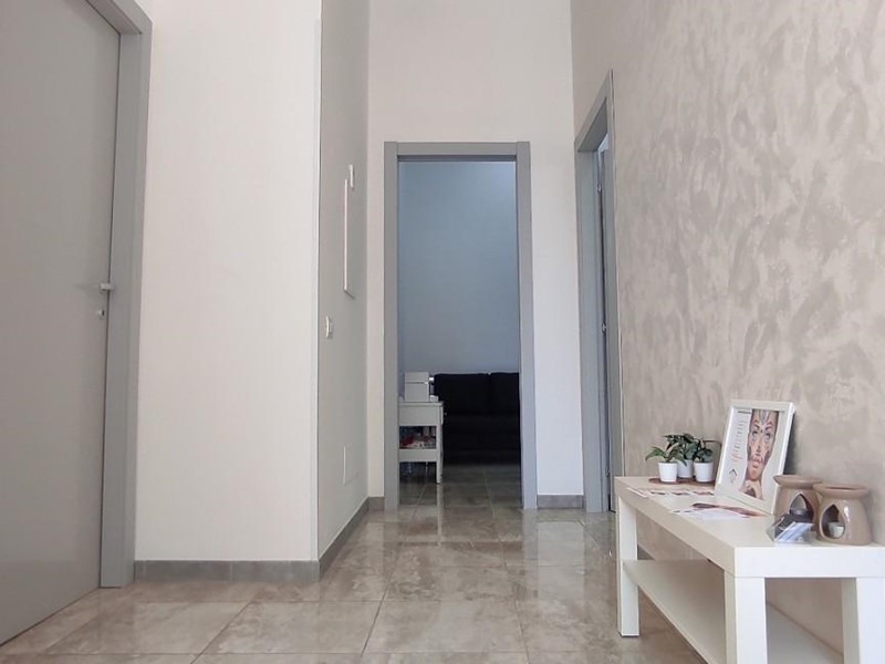 L’accesso avviene da vano segreteria e corridoio comune, in un ambiente curato e professionale. Possibilità di creare l'entrata da una delle due ampie vetrine. Il locale è climatizzato caldo/freddo ed è attualmente attrezzato con due postazioni, ideale per onicotecniche, make-up artist o altri servizi dedicati al benessere e alla cura della persona.