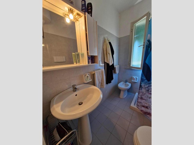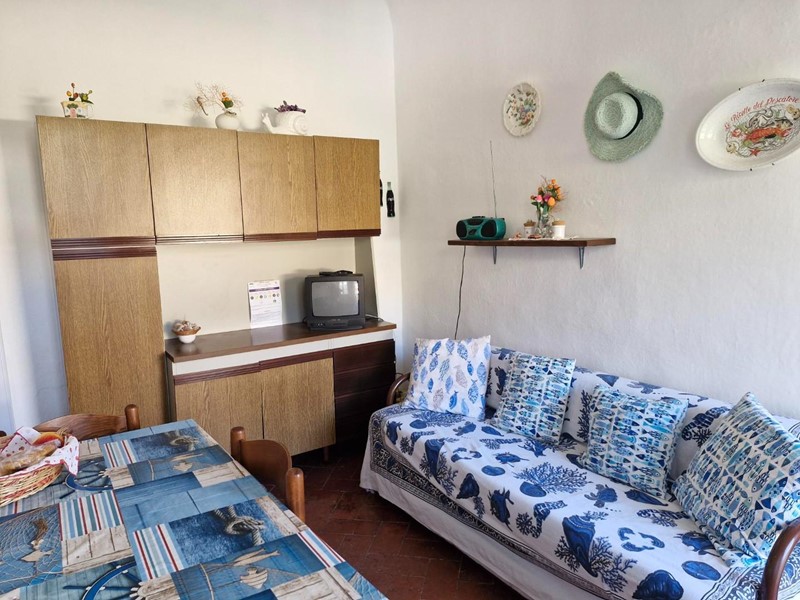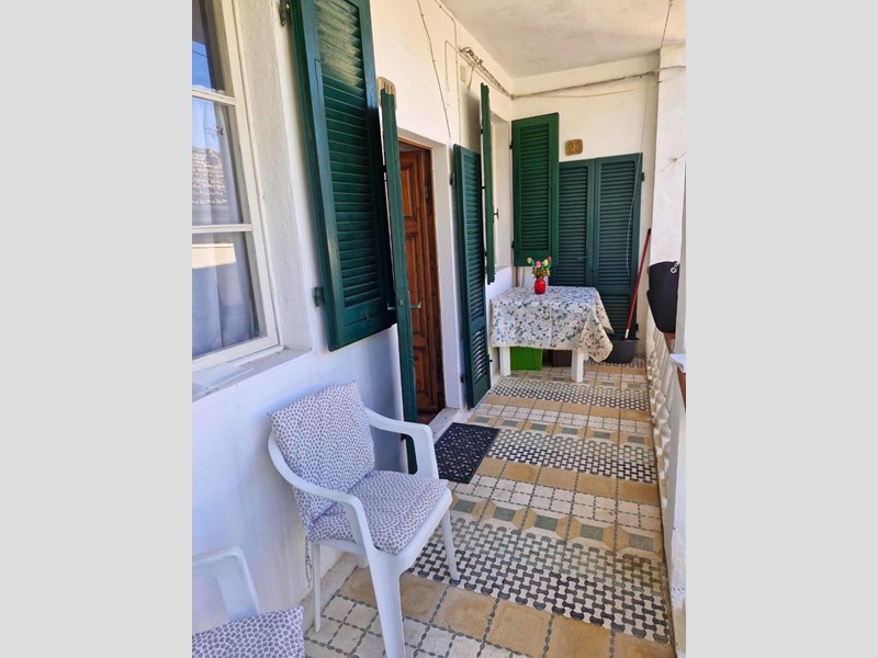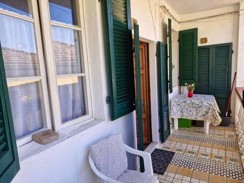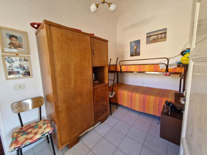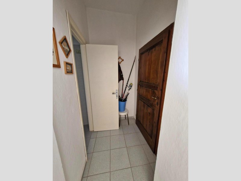 L’appartamento è composto da soggiorno, piccolo disimpegno, cucinotto, piccolo bagno con finestra, cameretta, camera matrimoniale, disimpegno con altro eventuale accesso dal portico, bagno con doccia e finestra.