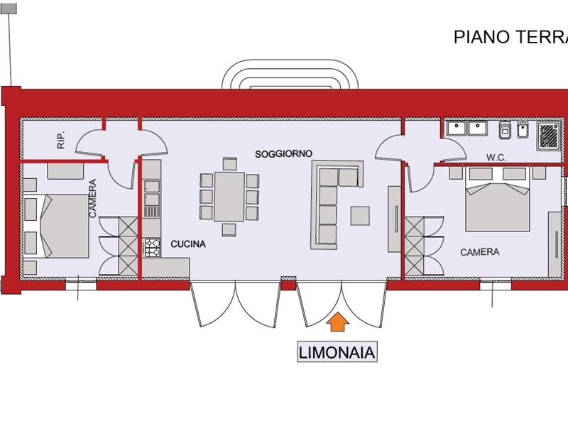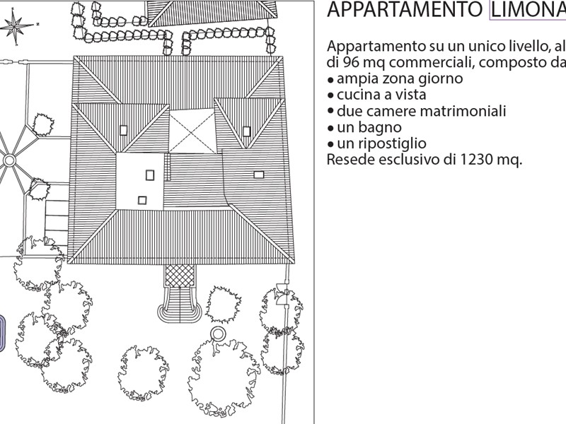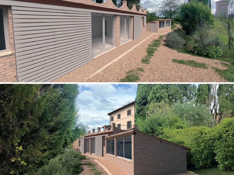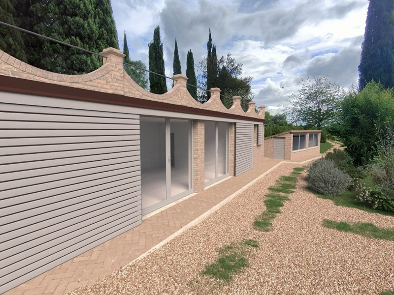 Riqualificazione ex limonaia di circa 96 mq, completamente indipendente, composta da ampio soggiorno-pranzo, due camere da letto , bagno e ripostiglio. L'immobile è dotato di una piccola dependance di circa 20 mq a pochi metri dove sarà realizzato un vano pluriuso con bagno, versatile e sfruttabile come zona ospiti .
