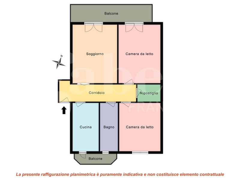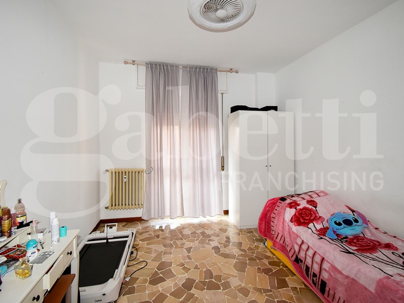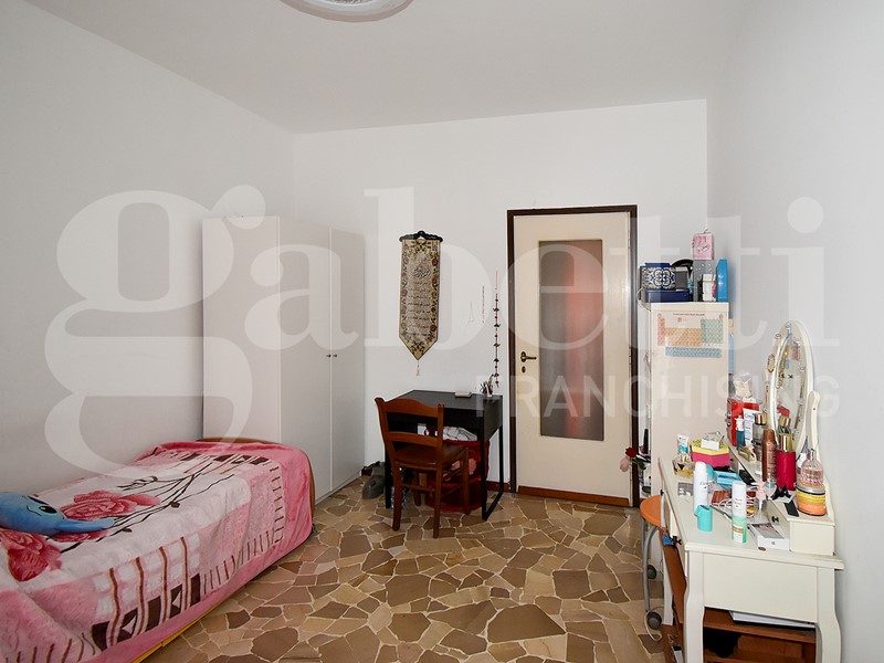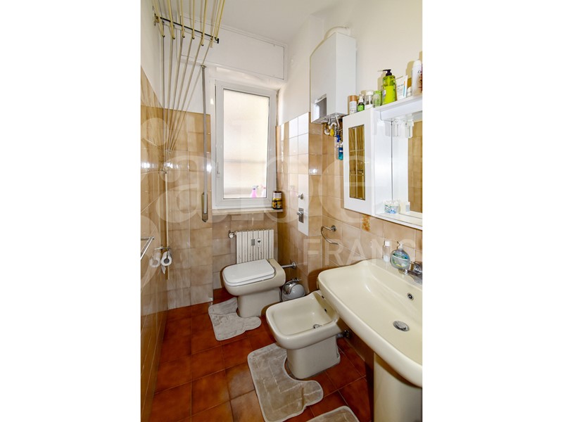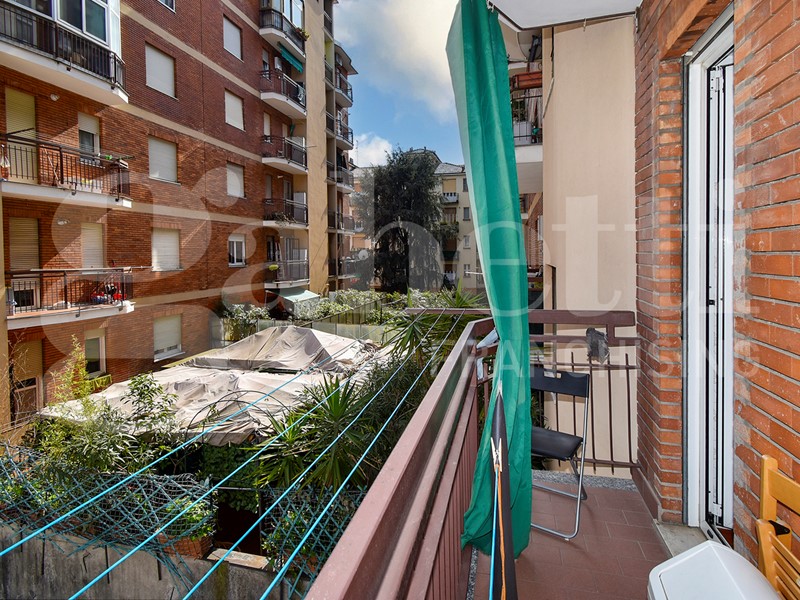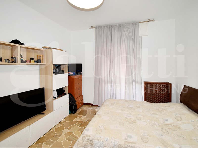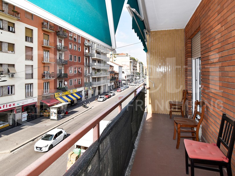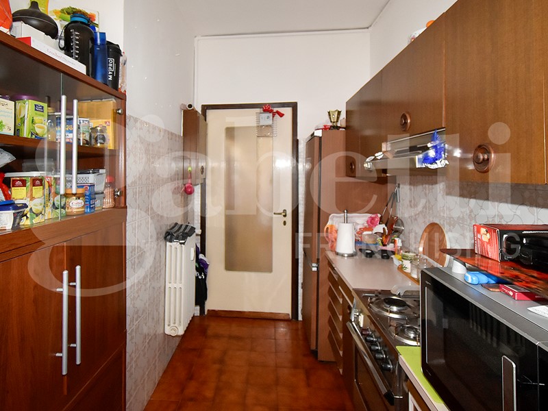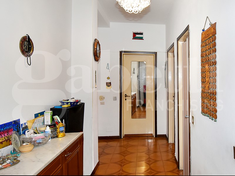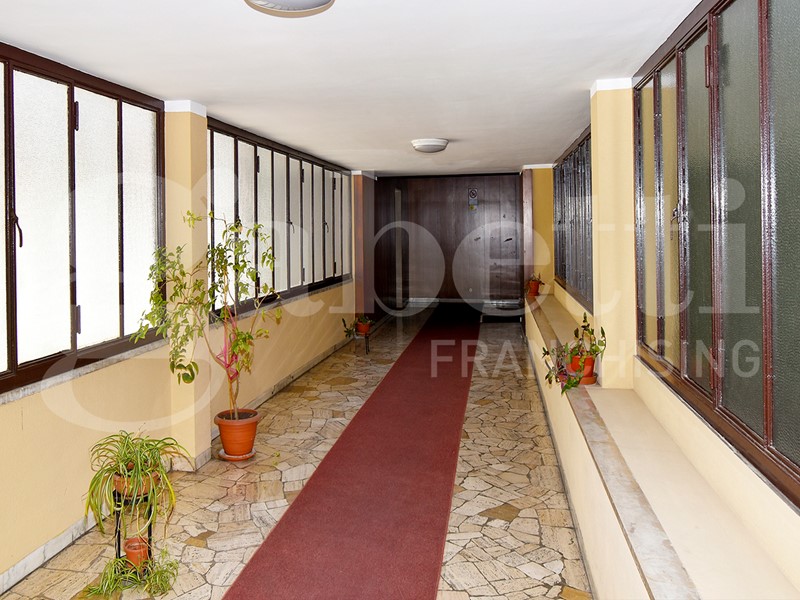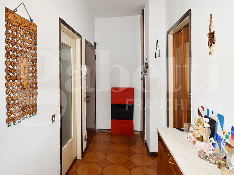 La soluzione gode di una doppia esposizione (nord - sud) e al suo interno si compone da ingresso su corridoio, spaziosa cucina con balcone, soggiorno con lunga balconata, due camere da letto matrimoniali, bagno finestrato e capiente ripostiglio. Completa la soluzione un solaio di pertinenza. Le finiture sono di capitolato con porte interne in legno e vetro, pavimenti in palladiana e ceramica, mentre gli infissi sono più recenti in alluminio con vetro doppio.