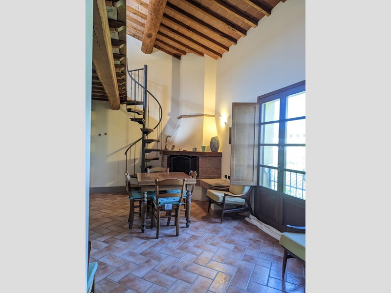 Montopoli in val d'Arno-Marti-posizione collinare panoramica, appartamento indipendente al piano primo in colonica completamente ristrutturata, composto da corte privata di ingresso, scale esclusive interne di accesso, zona giorno con caminetto, camera matrimoniale, bagno, piano sottotetto, utilizzabile come seconda camera e un ripostiglio. Completano la proprietà un posto auto esclusivo. Ottime finiture, arredamento compreso nel prezzo. Libero da subito.