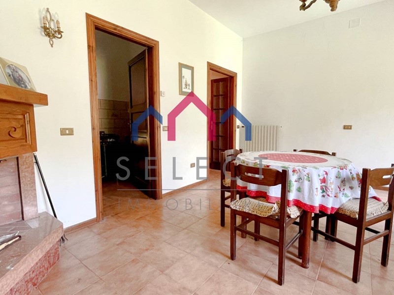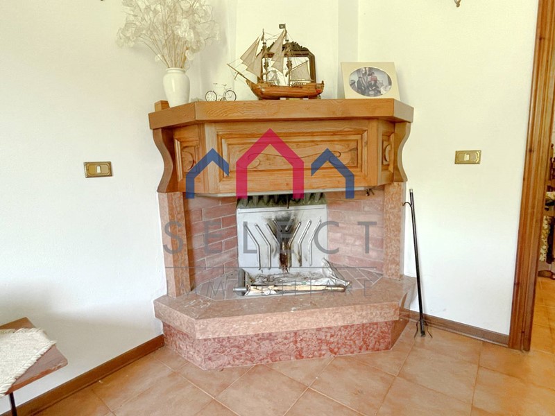 Si entra in un salottino accogliente dove sulla sinistra abbiamo le scale per l'accesso alla zona notte del piano primo, poi abbiamo una zona giorno e pranzo con camino ed il cucinotto con accesso al giardino laterale. Nella zona retrostante abbiamo la zona servizi con un disimpegno, il bagno con vasca, una zona dispensa e la cantina/garage.