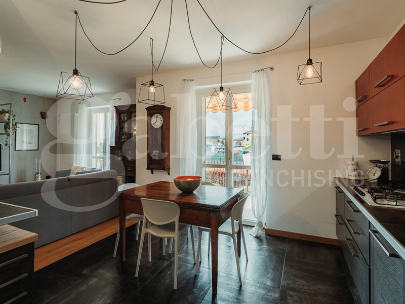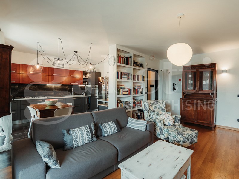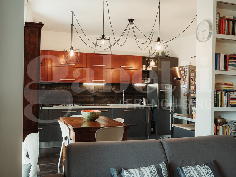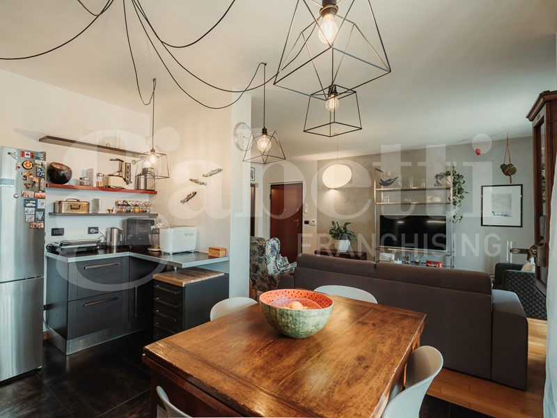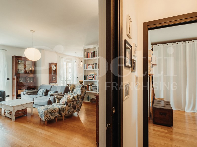 L'appartamento è un quadrilocale luminoso e spazioso, con un ingresso che si apre su una zona giorno ariosa, dove la cucina si affaccia sul soggiorno come un invito alla condivisione. È uno di quegli spazi dove immagini subito una cena tra amici, il profumo del caffè al mattino, il silenzio delle sere d'inverno.