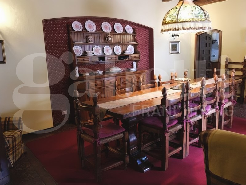 Ampia zona pranzo con tavolo da 12 posti (soffitto rivestito in legno con travi a vista)