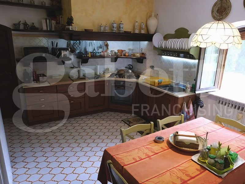 Ampia cucina abitabile con arredi di pregio realizzati recentemente e tavolo a 6 posti con dispensa