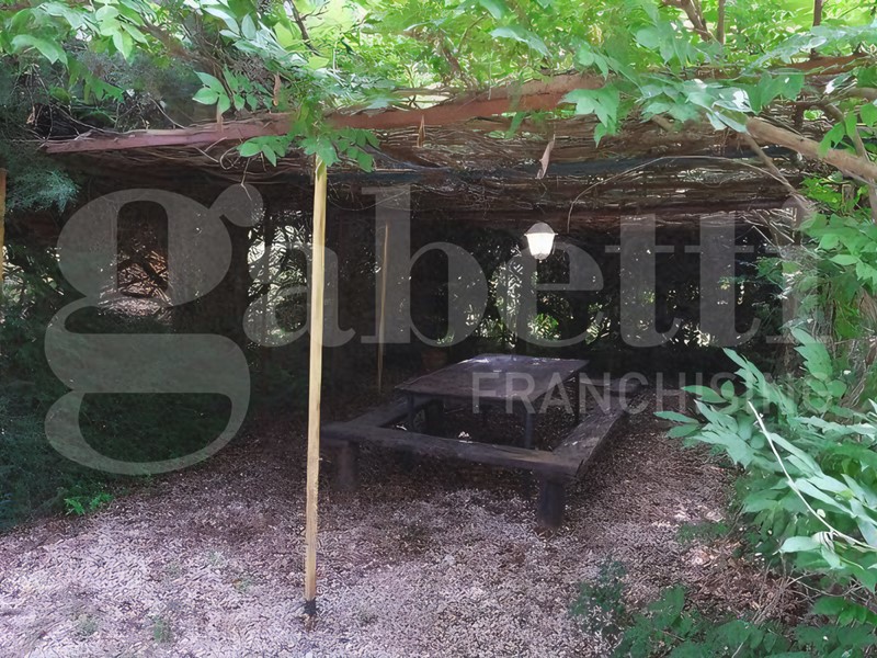 attrezzato con fontana, ombrellone (mt 4x4), tavolo ad 8 posti, dondolo e barbecue.
