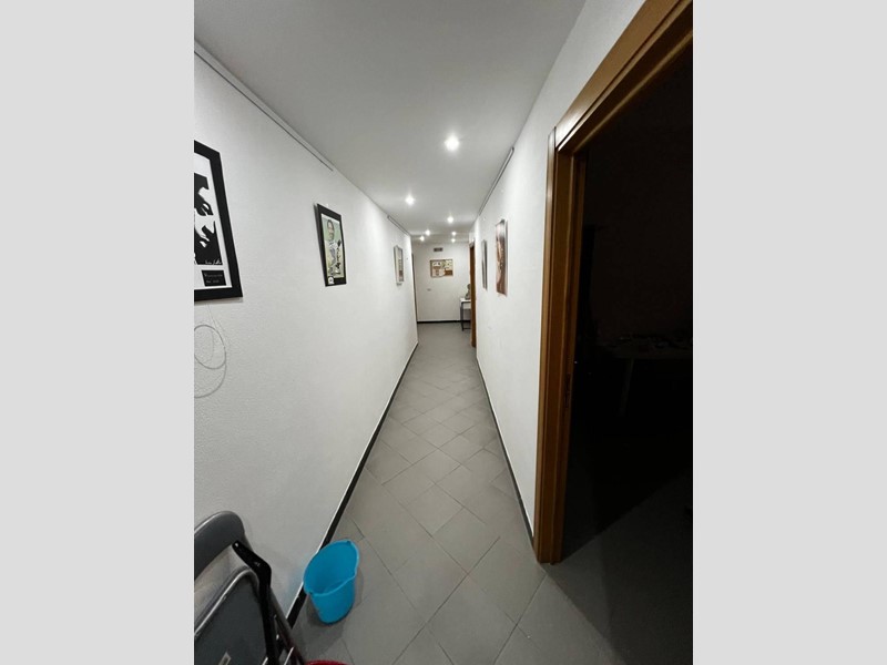 All'interno, l'ufficio dispone di una varietà di ambienti ben distribuiti. Entrando, si viene accolti da un ampio ingresso che conduce a un corridoio luminoso, decorato con eleganti quadri.