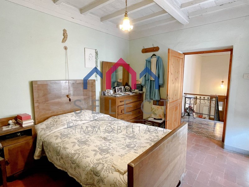 Dalle scale poste all'ingresso saliamo al piano primo dove abbiamo un disimpegno, cinque camere matrimoniali di cui una con balcone, salottino con camino e bagno con vasca.