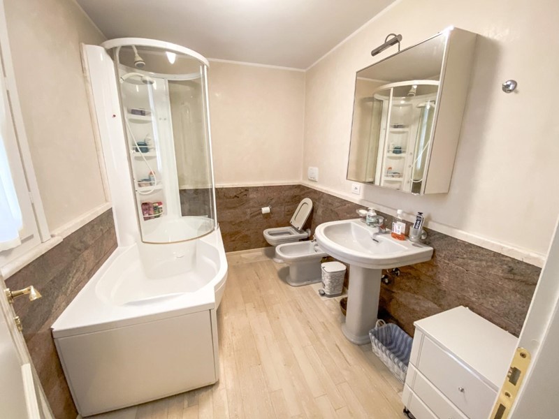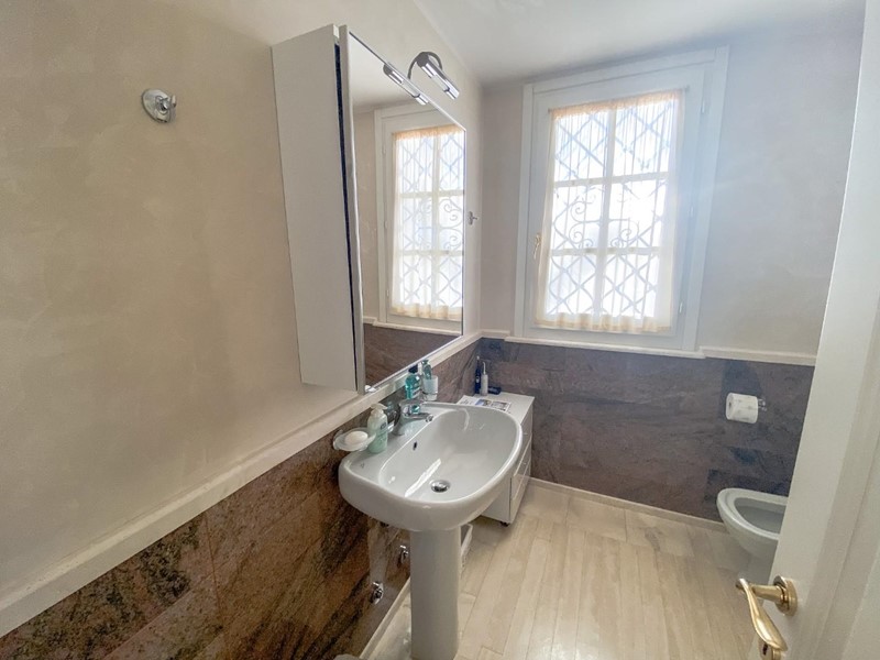 Il piano terra, elegante e confortevole, è composto da un doppio salone, una cucina con sala pranzo, una lavanderia, un bagno con doccia e una camera matrimoniale con guardaroba e bagno privato con doccia.