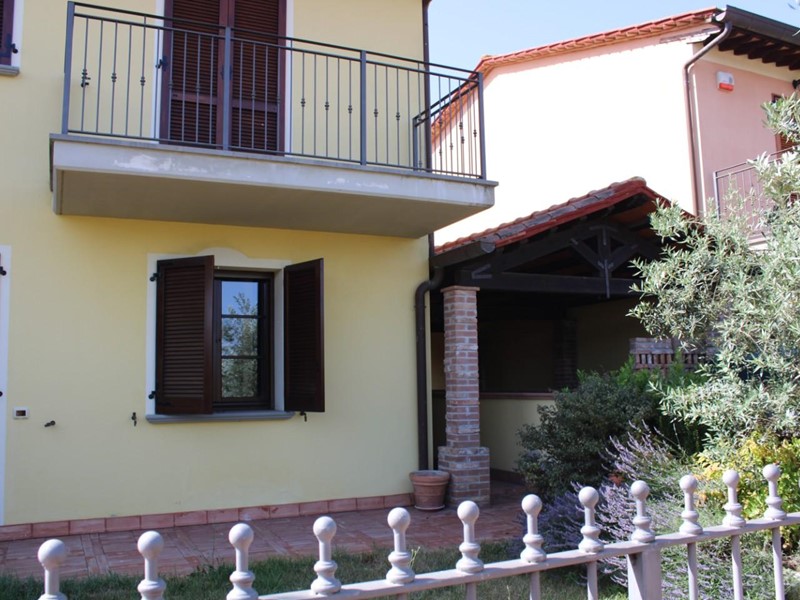 Crespina Lorenzana - Vicinanze Cenaia In bellissimo borgo Toscano di recente costruzione, proponiamo Villetta a schiera angolare con ingresso dal resede esclusivo che porta al bellissimo terrazzo coperto che propone zona pranzo e cene con vista sulla campagna, ingresso in soggiorno con camino, cucina abitabile con terrazzo, e bagno al piano terra, salendo al piano primo da ampia scala esclusiva troviamo due camere con balcone e bagno. Oltre a locale garage con ripostiglio. l'immobile si presenta con rifiniture di pregio, impianto di allarme, condizionatori.