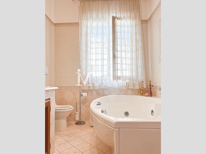 Salendo tre scalini accediamo alla zone notte dove troviamo due grandi matrimoniali e un bel bagno ristrutturato con vasca idromassaggio e doccia
