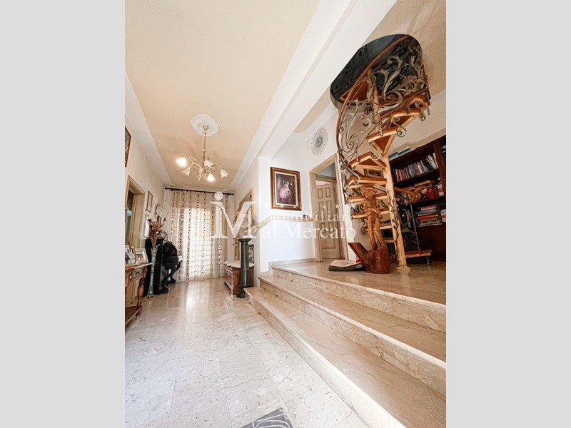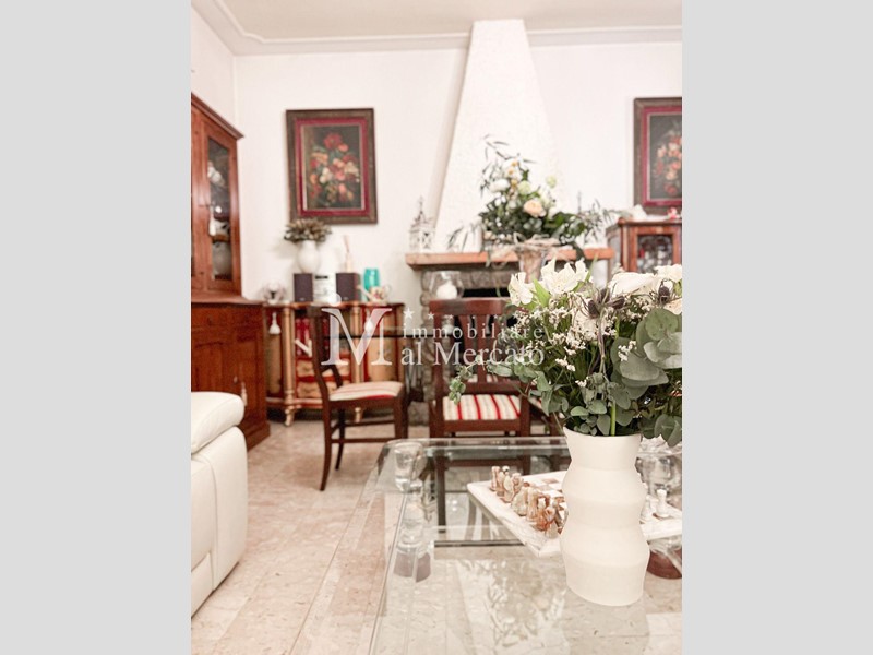 Al suo interno e' composta da ingresso , studio, sala molto grande con affaccio su un balcone , cucina abitabile con balcone da dove possiamo uscire per accedere al giardino ne retro.