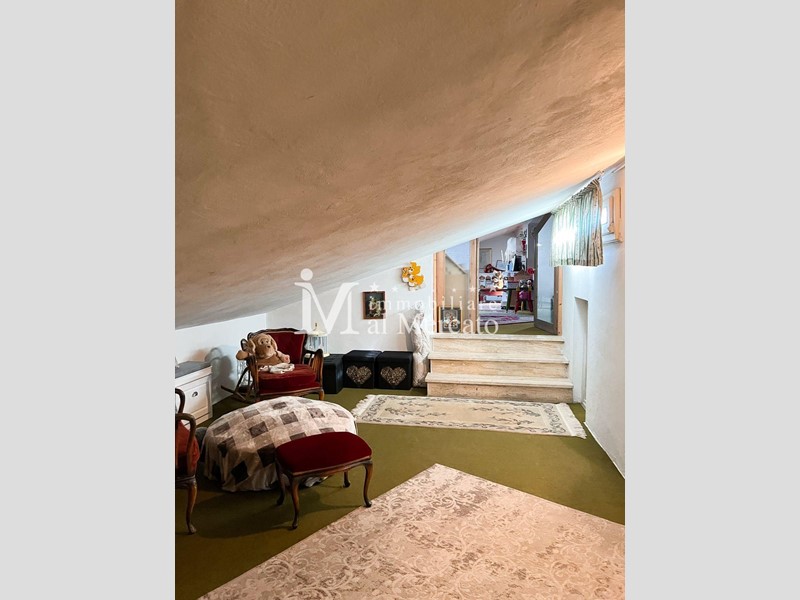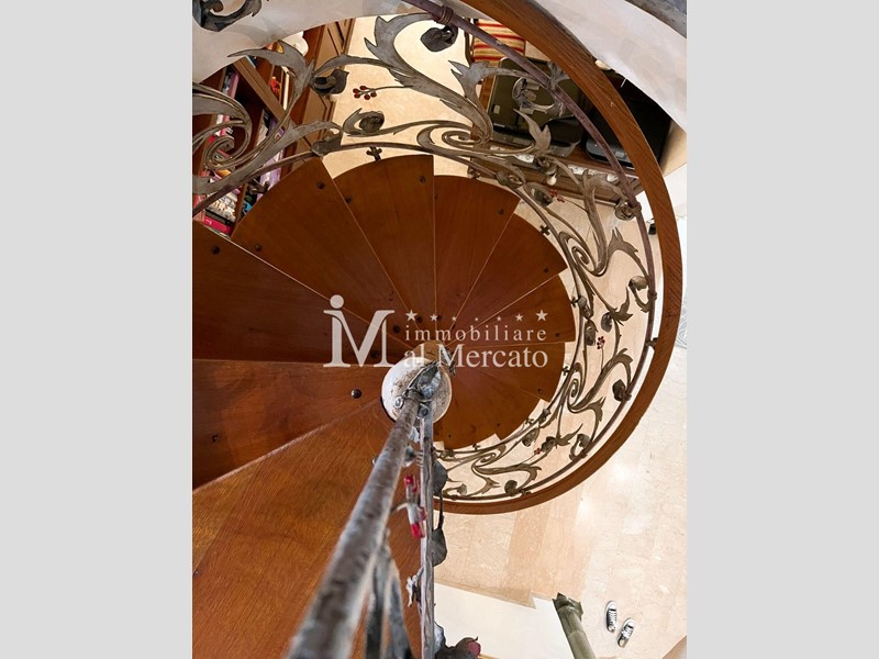 Accedendo tramite una bellissima a scala a chiocciola in ferro battuto accediamo al piano mansardato dove troviamo il ripostiglio e un vano dove al momento e' adibita a camera con aria condizionata.