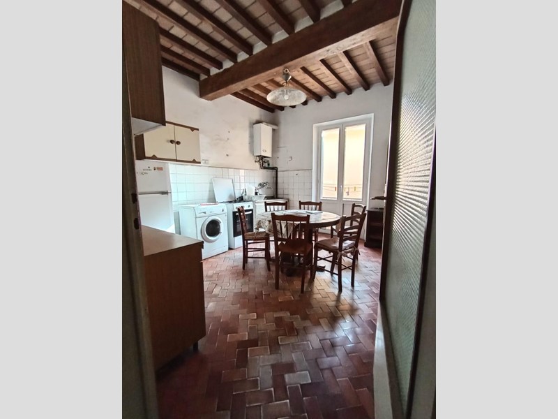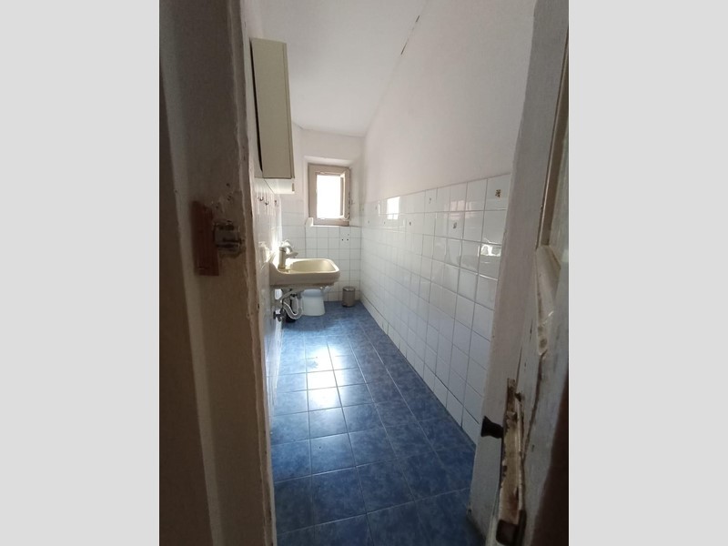 In fondo al corridoio troviamo il bagno grande con finestra e sulla destra il bagno piccolo, il ripostiglio ed infine la cucina abitabile con portafinestra con affaccio nella chiostra del palazzo.