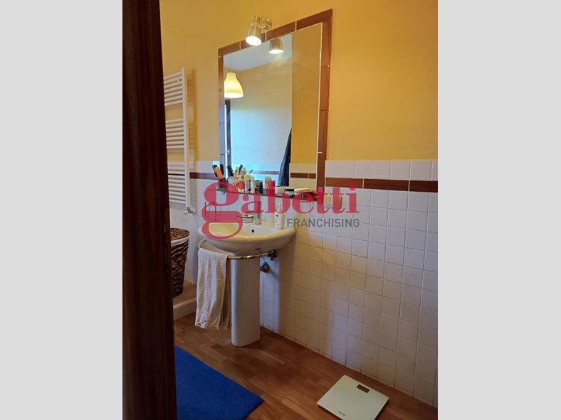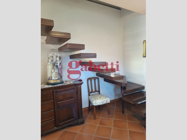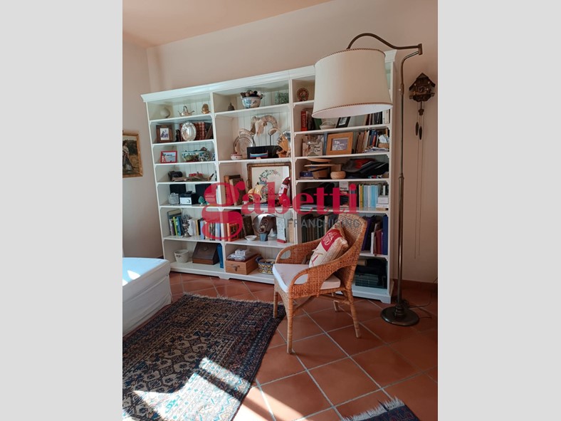 Il primo piano ospita la zona giorno con una luminosa cucina a vista che si apre su un ampio soggiorno con camino, due camere da letto, due bagni e pavimentazione in parquet nella zona notte, che dona calore ed eleganza agli ambienti.