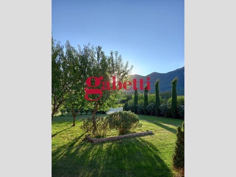 La proprietà, circondata da un rigoglioso giardino di pertinenza, comprende circa 100 piante di ulivo, un frutteto, numerose essenze floreali e piante ornamentali, creando un'oasi di verde e tranquillità. All'esterno è presente un impianto di irrigazione con getti a pioggia, alimentato da due pozzi di proprietà, che garantisce l'autonomia nell'irrigazione del prato e delle aree verdi.