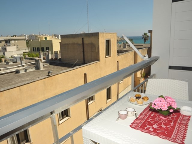 L'appartamento si trova sul Lungomare Terra d’Otranto, di fronte alle spiagge, libere e private, è stato recentemente ristrutturato ed è posto al terzo piano con ascensore. E’ composto da soggiorno pranzo con aria condizionata, angolo cottura attrezzato con lavastoviglie, frigo, forno e utensili vari, piccolo balconcino.