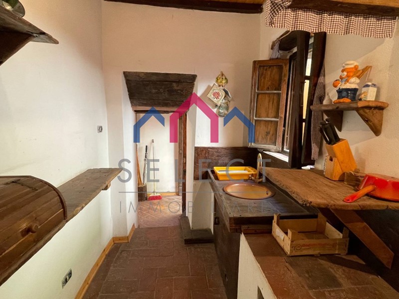 Tipico edificio toscano con travi in legno e mezzane in cotto. Si accede all'immobile dalla strada comunale fino ad una corte comune antistante, e la casa è disposta su 4 piani. Si compone al piano terra da ingresso, cucinotto, soggiorno-pranzo con camino a legna, al piano primo da cameretta di passaggio con soppalco, camera matrimoniale con zona armadio rialzata. Al piano seminterrato 1, a cui si accede da scale interne, abbiamo un piccolo disimpegno, bagno con doccia e camera da risistemare. Al piano seminterrato 2 a cui si accede solo dall'esterno troviamo una tettoia e due cantinette.