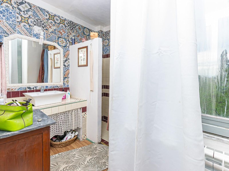al primo piano troviamo una camera matrimoniale, una stanza armadi/ lavanderia e il bagno completamente ristrutturato con doccia e finestra,