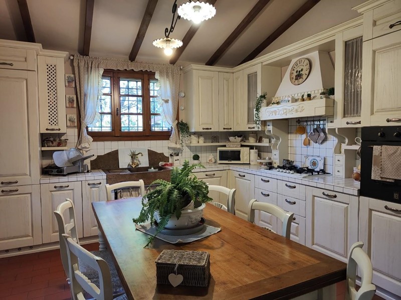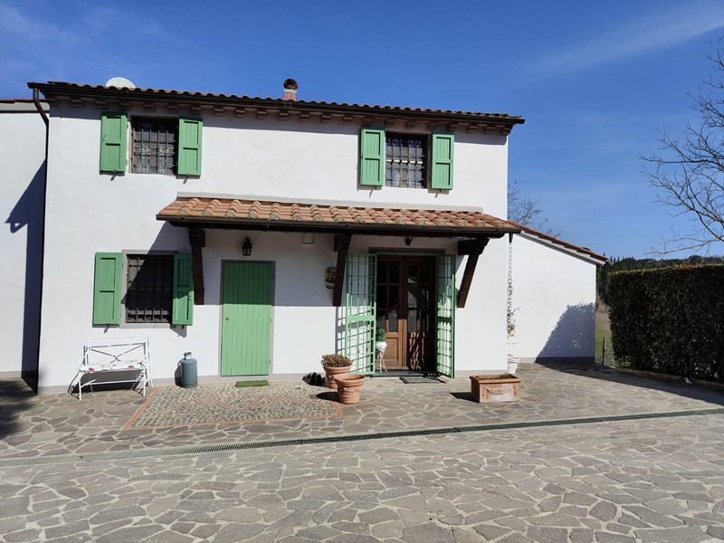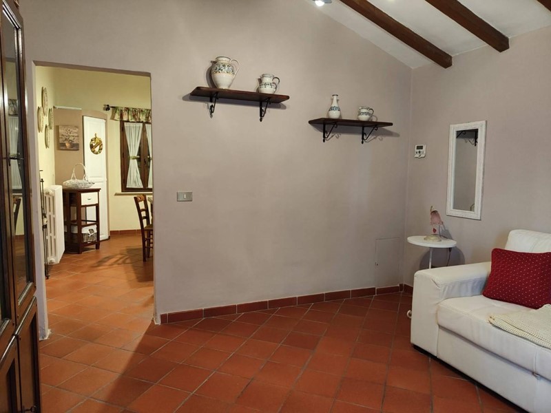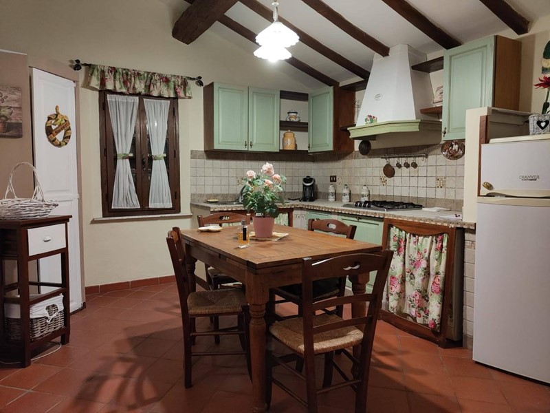 Inoltrandosi nel verde della campagna tramite una breve strada sterrata si giunge al cancello di questo rustico interamente ristrutturato e già suddiviso in due unità indipendenti, entrambe graziosamente rifinite. L'appartamento al piano terra si compone di un accogliente ingresso con camino, un ampio soggiorno, la cucina abitabile con accesso a un elegante loggiato per pranzi all'aria aperta, ripostiglio, due camere matrimoniali, studio e bagno con vasca idromassaggio e doccia. Al primo ed ultimo piano troviamo il soggiorno, la cucina abitabile, due camere (matrimoniale, singola) e il bagno.