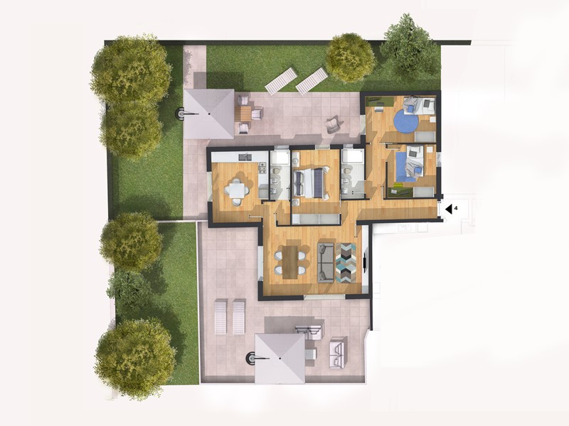 Disponibile al piano primo appartamento in villa composto da soggiorno, cucina abitabile, tre camere da letto,  due bagni, veranda di mq 70 e giardino privato di mq 120, posto auto.